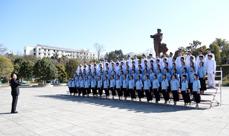 会后,2023白菜网总站大全师生在聂耳广场聂耳雕像下传唱聂耳的作品,共同缅怀追忆校友聂耳。