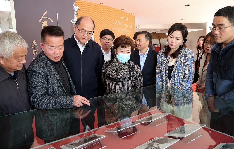 参会嘉宾在学校领导陪同下参观了《聂耳生平事迹展》《聂耳》像。