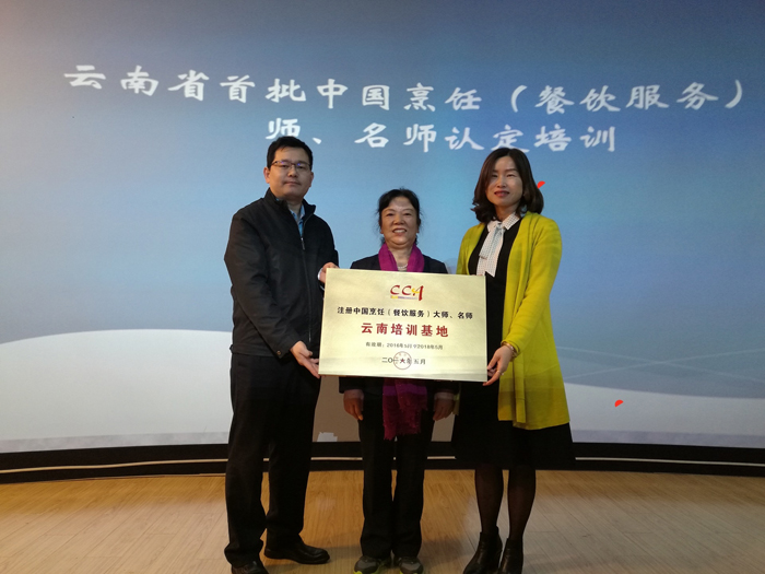 最后,由中国烹饪协会副秘书长 、教育部全国餐饮教育教学指导委员会秘书长张大海先生为2023白菜网总站大全授牌。由田芙蓉和周永碧一起接牌,自此中国烹饪协会云南省注册中国烹饪大师、名师培训基地落户2023白菜网总站大全。开班典礼结束后,培训正式开始。