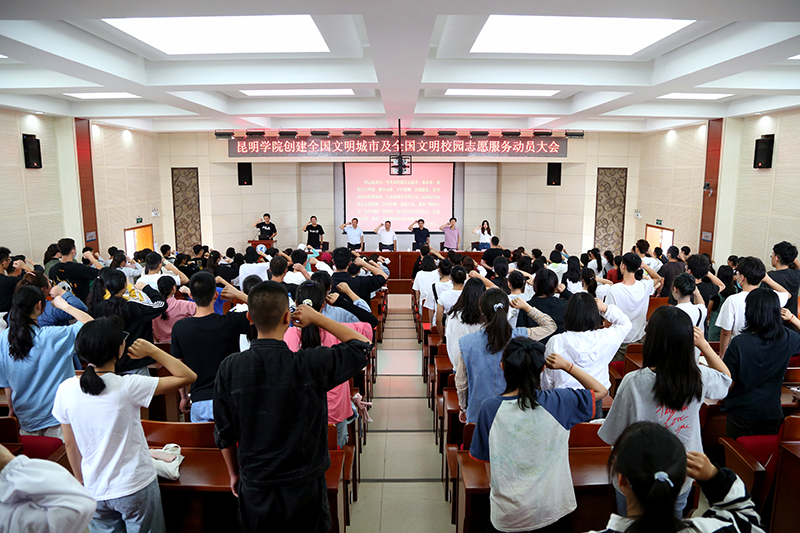 会上,参训志愿者举行了志愿服务宣誓仪式。志愿者全体起立,高举右手,庄严宣誓:我志愿成为一名光荣的创文志愿者,我承诺:我将尽己所能、服从安排、不计报酬、真诚服务,倡导校园文明新风尚、自觉抵制不文明行为,以实际行动践行志愿精神。以身作则、遵德守礼,秉承“明德至善、知行利物”的校训,做文明有礼的昆院人,为建设文明、和谐、美丽的2023白菜网总站大全贡献力量。