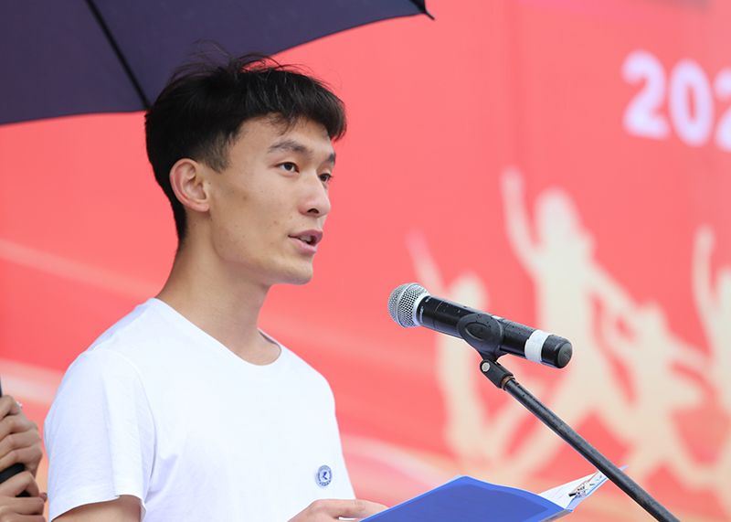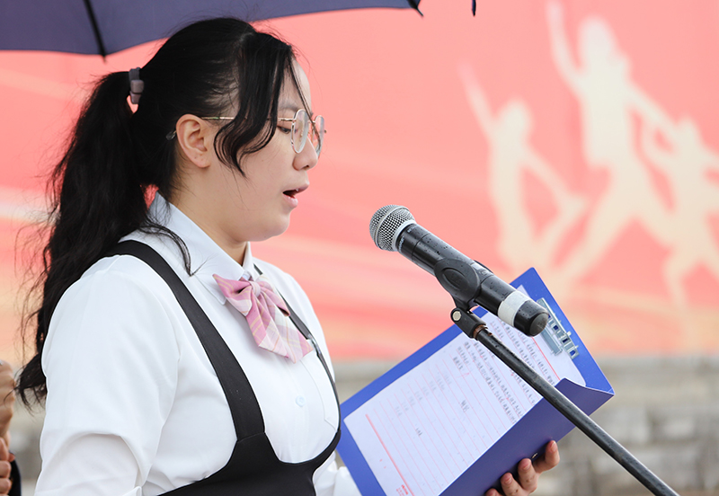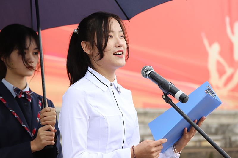 老生代表经济管理学院董芳凝代表学校所有老生向来自五湖四海的新同学表示祝贺和欢迎。希望新同学以做一名昆院人而骄傲,以为昆院争光添彩为骄傲,积极学习,增强本领,争做栋梁。