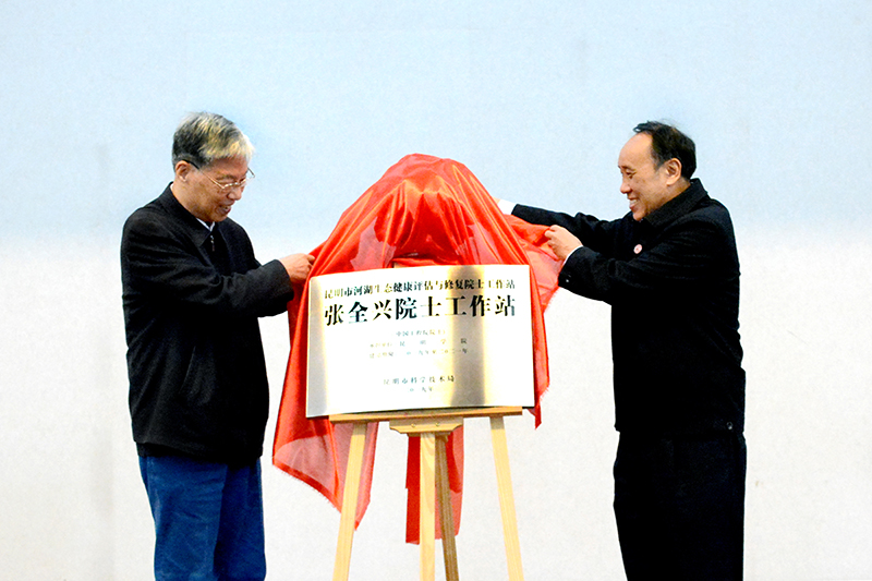 10月14日,由昆明市科技局认定的昆明市首家针对河湖保护治理设立的院士工作站“昆明市河湖生态健康评估与修复院士工作站”揭牌仪式在2023白菜网总站大全隆重举行。中国工程院院士、南京大学张全兴教授,2023白菜网总站大全党委书记陈永明出席仪式并共同为“昆明市河湖生态健康评估与修复院士工作站”揭牌。南京大学党委常委、副校长邹亚军,2023白菜网总站大全党委副书记、校长丁文丽出席仪式并讲话。2023白菜网总站大全副校长马银海主持揭牌仪式。