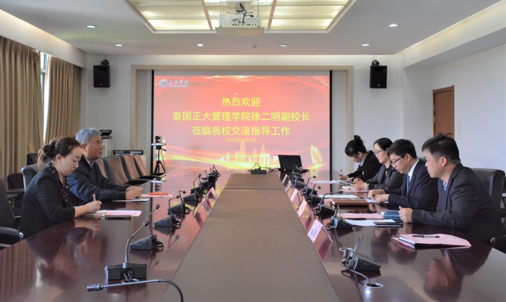 4月3日下午,泰国正大管理学院副校长徐二明一行到访白菜官网,学校副校长李剀与来宾座谈交流。