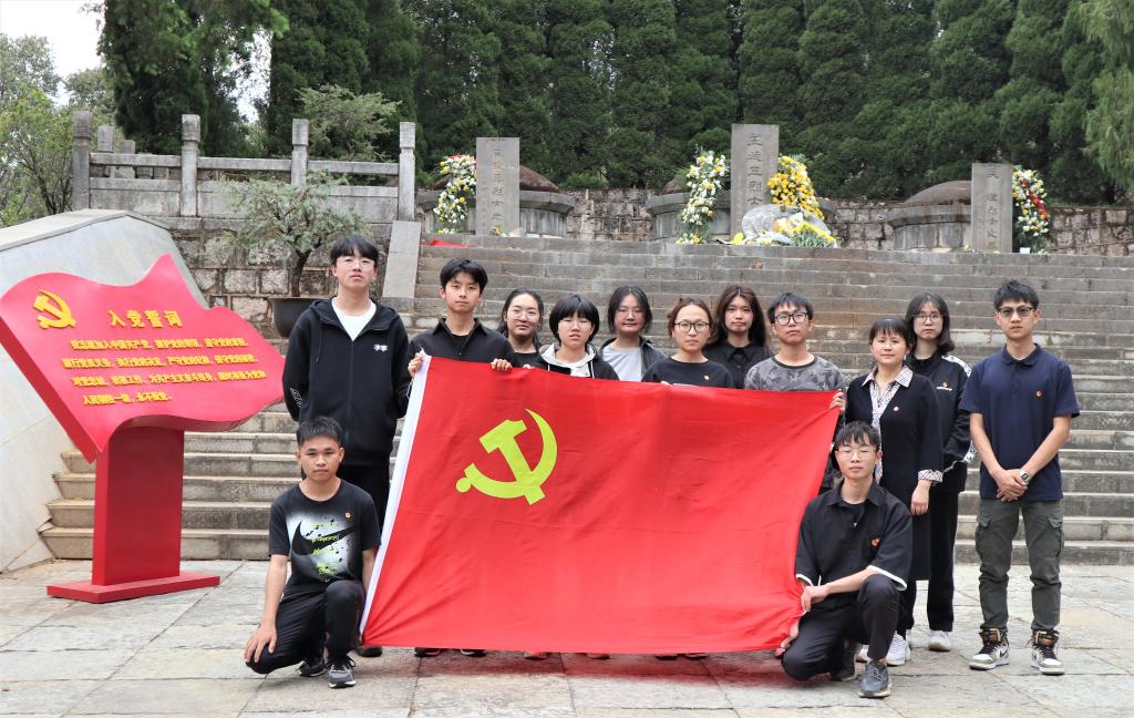 4月4日,马克思主义学院师生代表与五华区长春小学、昆明市第二中学师生代表齐聚西山聂耳墓前,参加“清明祭聂耳,传承爱国情”主题教育活动,以此缅怀校友聂耳,致敬国歌精神,争当红色青少年。